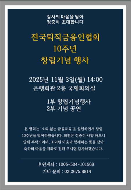 전국퇴직금융인협회 10주년 창립기념 행사 안내 (2025.11.03)