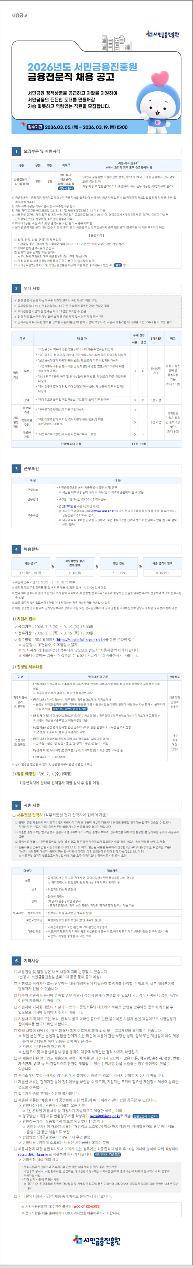 [채용정보 안내] 서민금융진흥원 2026년 금융전문직 채용공고